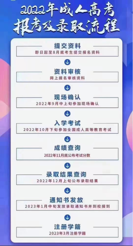 2022年陕西成人高考报名录取流程,成人高考报名考试录取流程每年基本上是一样的。报名-资格审核-确认报名-考试-查成绩-录取-报道。因为疫情的原因可能采集信息的安排会有变动,一般情况下都是现场采集信息,疫情期间避免学员聚集,有的省份会安排线上采集信息,具体以当时的招生考试院通知为准。